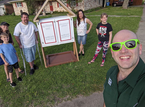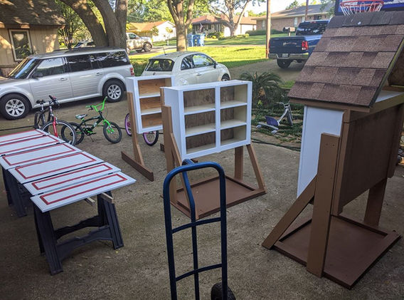 Clayton & Donna Bailey, Rowlett residents and owners of local home inspection company, Green Scene Home Inspections, created these small neighborhood pantries, using up-cycled supplies, donations and ideas from lots of friends, and the creativity and free labor from their kids.